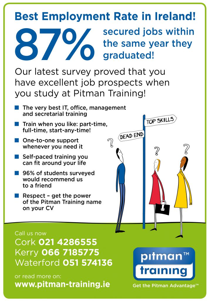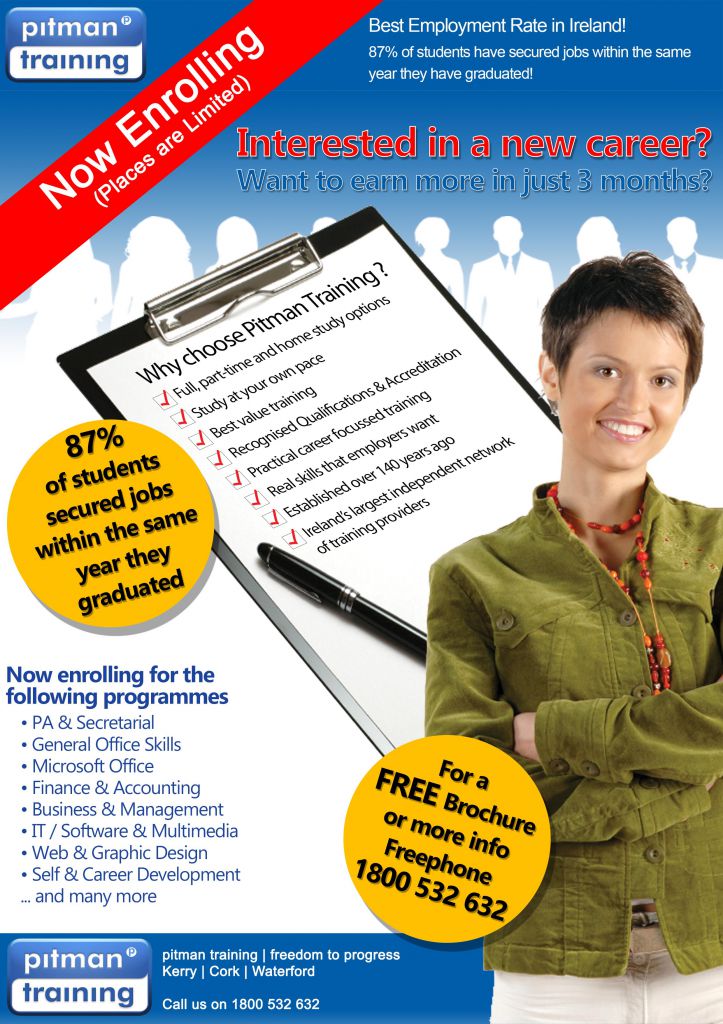 Pitman Training is Kerry’s fastest growing training institution offering career-specific training in business, Computer and Office Skills such as Medical and Legal Secretary, Office Administration, Marketing and PR.