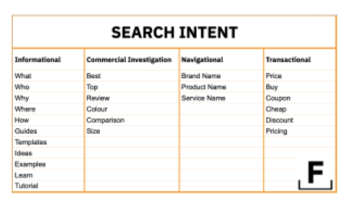 To further understand search intent, take a look at this table by Foundation Inc.: